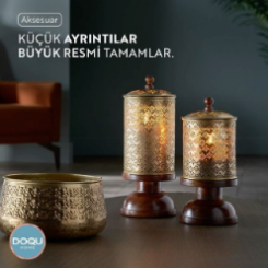 TV battaniyelerinde ve kırlent çeşitlerinde zengin desen ve modellerini bahçelerinizde, yaşam odalarınızda ve yatak odalarınızda kullanabileceğiniz rahatlığı ve şık görüntüsü ile evde geçirdiğiniz her anı daha konforlu kılıyor. Aksesuar ürün grupları içerisinde yer alan abajur, lambader ve puf modellerimiz yaşam odalarınızın her köşesine ayrı hava katacak. Lambader ve abajur modellerimizi salonunuza şıklık katmak için kullanabilir aynı zamanda istediğiniz alanda loş ışık alanı sağlamak için de kullanabileceksiniz. Ayrıca en beğenilen kokular ile hazırlanan mum çeşitlerimiz hem görüntüsü hem odanıza verdiği enerjisi ile farkını hissedeceksiniz.